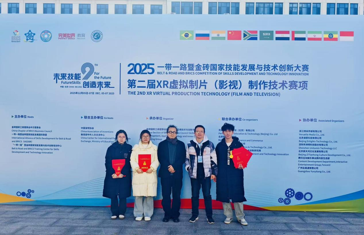 在备受瞩目的“第二届XR虚拟制片(影视)制作技术赛项”全国总决赛中,我院参赛团队与来自全国众多院校的优秀队伍同台竞技。该赛项聚焦影视工业前沿的虚拟制片技术,旨在考察选手在虚拟制作流程、实时引擎应用、视觉叙事等方面的综合能力。经过激烈角逐,我院团队作品在创意、技术与艺术表现上均获得评委高度认可,最终脱颖而出,荣获国家级一等奖。这一成绩不仅标志着我院在该尖端技术应用教学与实践方面已跻身全国前列,也印证了“未来技能,创造未来”的大赛主题。