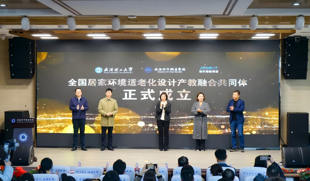 2025年12月26日,由湖北省教育厅、中国室内装饰协会指导,海天恒基建筑装饰工程(武汉)有限公司、武汉理工大学、武汉城市职业学院联合发起的“全国居家环境适老化设计产教融合共同体”成立大会,在武汉城市职业学院隆重举行,我校凭借在相关领域的专业积淀与育人实践,成功当选该共同体副理事长单位,旨在整合“政行企校”资源,构建人才培养、技术创新、产业服务于一体的协同平台。